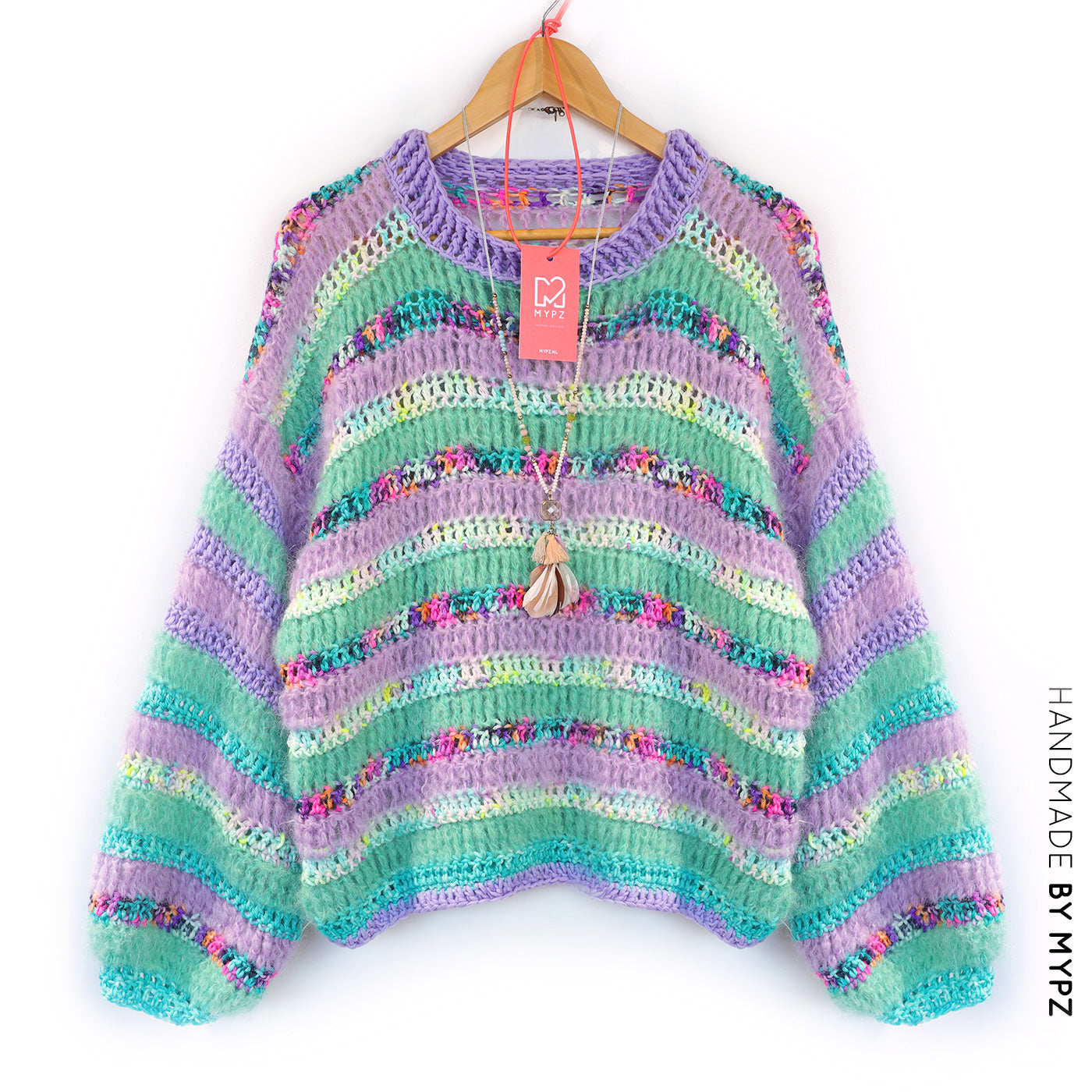 This is a handmade knit made by MYPZ in The Netherlands. Each cardigan or sweater is a unique piece and we take a lot of time and care to create these beautiful products. This sweater has a oversized fit.