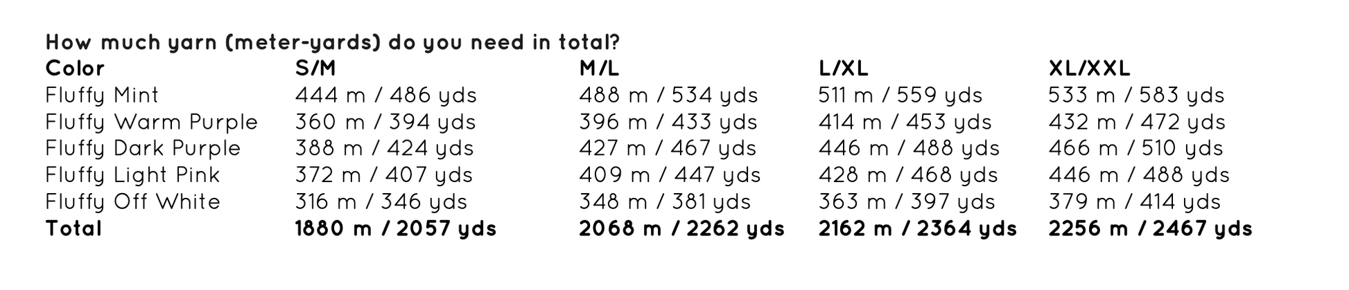 How much yarn do you need (based on the cardigan on the picture size S/M, M/L (L/XL & XL/XXL):