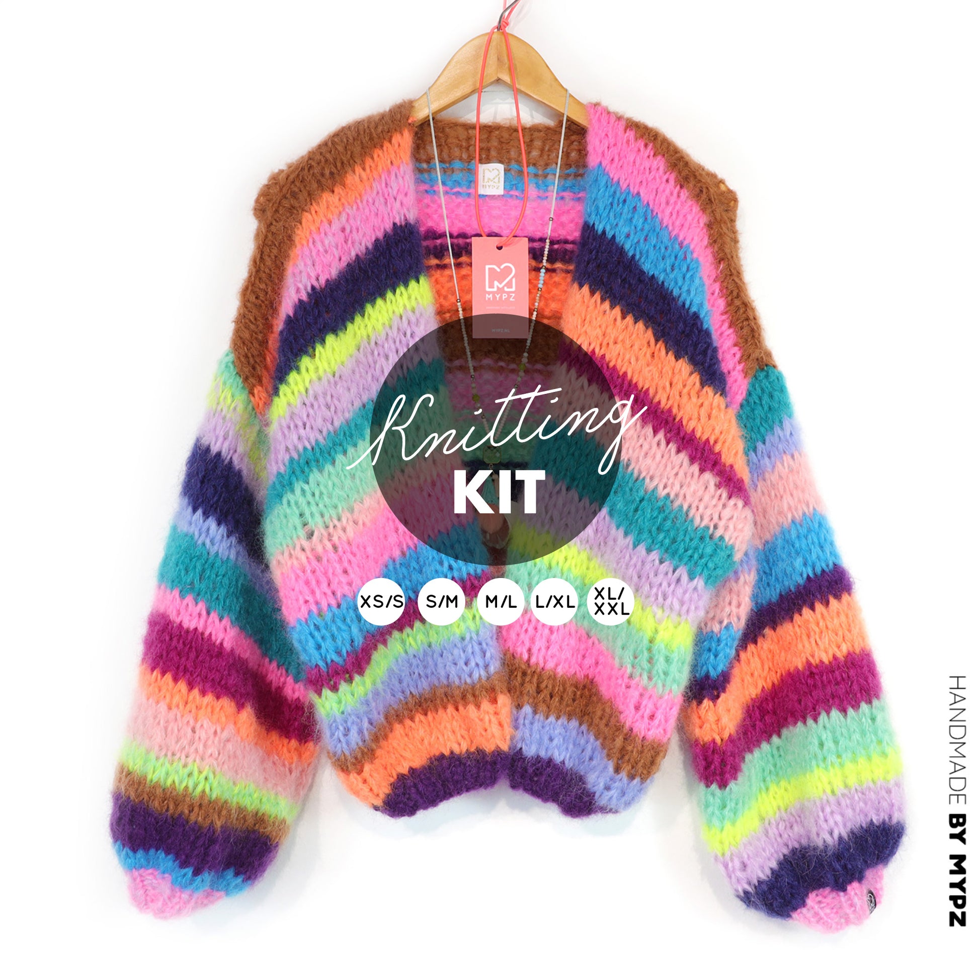 Knitting Kit – Chunky Mohair Cardigan Rainbow Medley No.12 (ENG-NL-DE)
