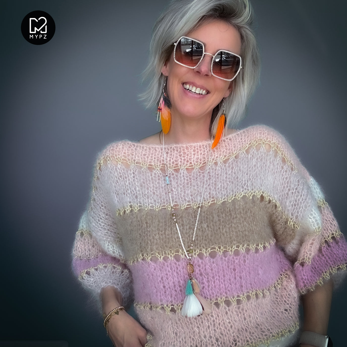 This is a handmade knit made by MYPZ in The Netherlands. Each cardigan or sweater is a unique piece and we take a lot of time and care to create these beautiful products. This beautiful sweater is made of a high quality mohair and does not pill. It is very light, warm and comfortable. These brushed yarns may shed a little but after a while, this will subside.
